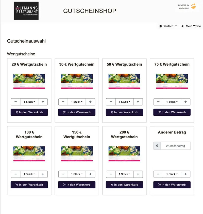 Einfach, schnell, bequem und direkt online bei unserem Gutscheinpartner Yovite.com bestellen.